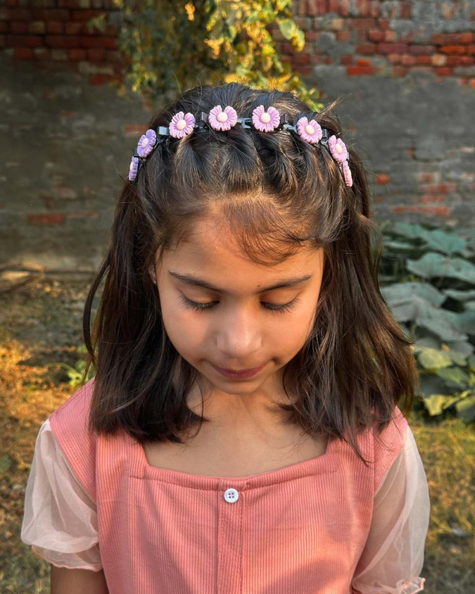 Floral Kids Hair Band with Clips; a charming accessory that feels like a little tiara. Adorned with delicate flowers and available in four lovely colours, it adds a touch of playfulness and grace to every outfit.